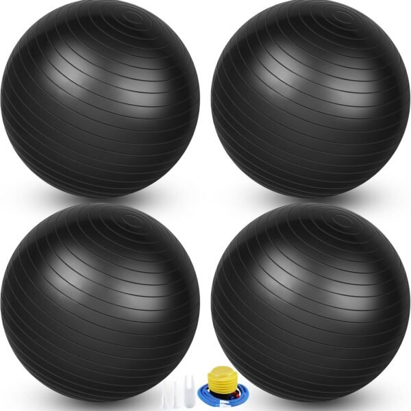 4 Pcs 26 Inch Yoga Exercise Ball Pilates Pregnancy Birthing Fitness Ball with Quick Pump Anti Burst for Improved Posture, Balance, Yoga, Pilates, Training