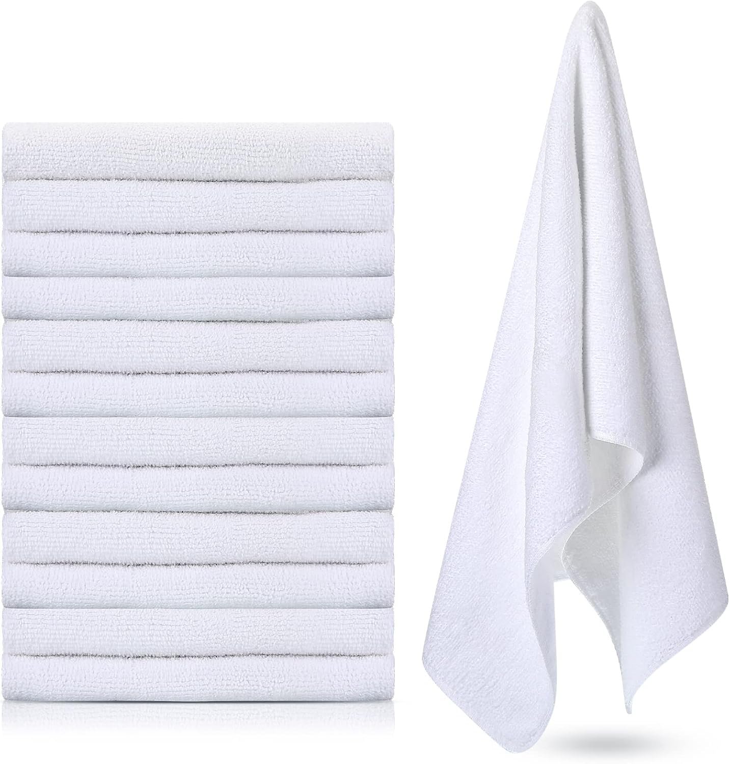 12 Pcs Microfiber Gym Towels, 360 GSM 12 x 30 Inch Gentle and Fast Drying Absorbent Towels for Men Women Yoga Travel Sports(White)