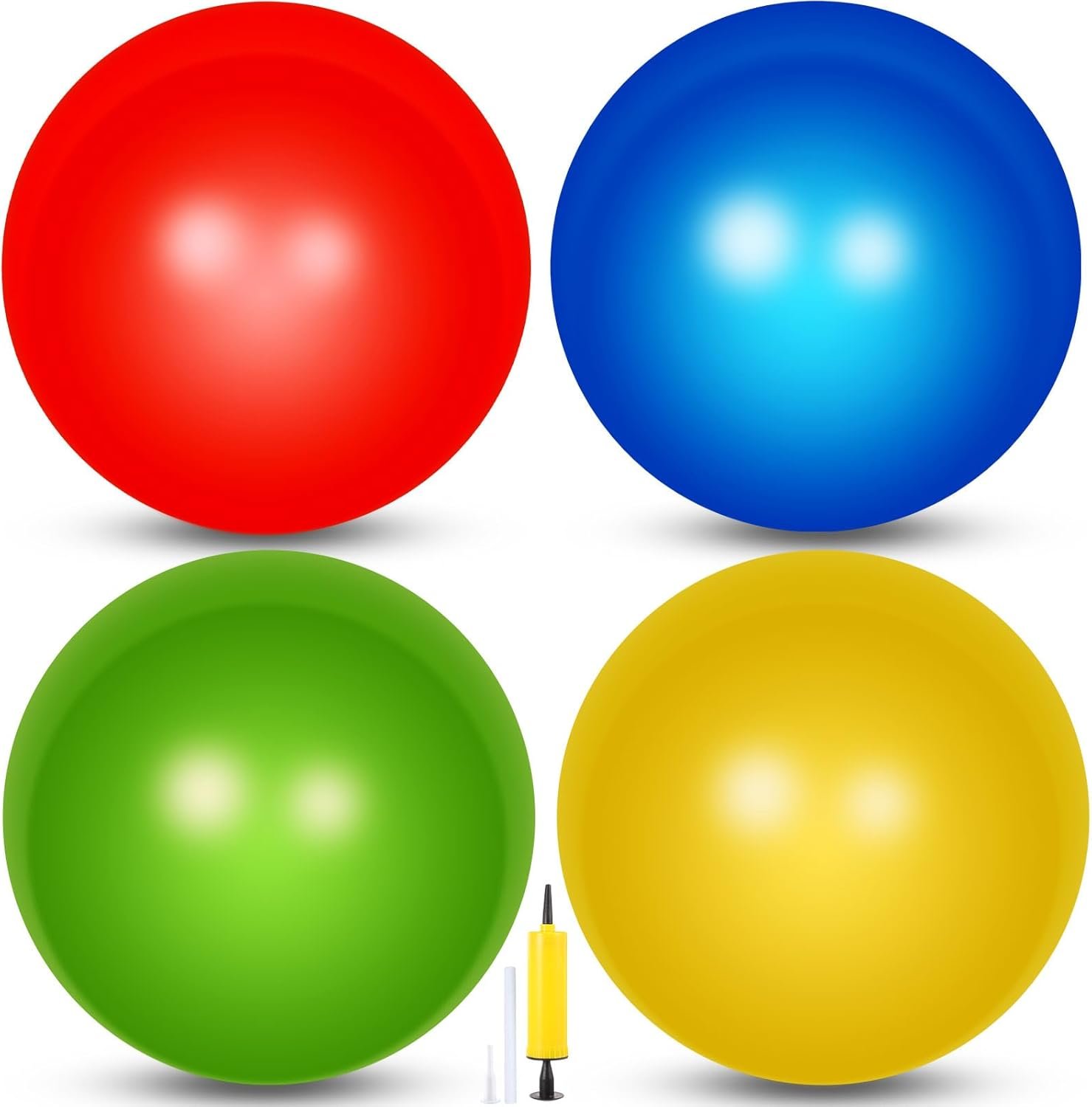 4 Pcs Yoga Exercise Ball Pilates Pregnancy Birthing Fitness Ball with Quick Pump Anti Burst for Improved Posture, Balance, Yoga, Pilates, Training, 4 Colors